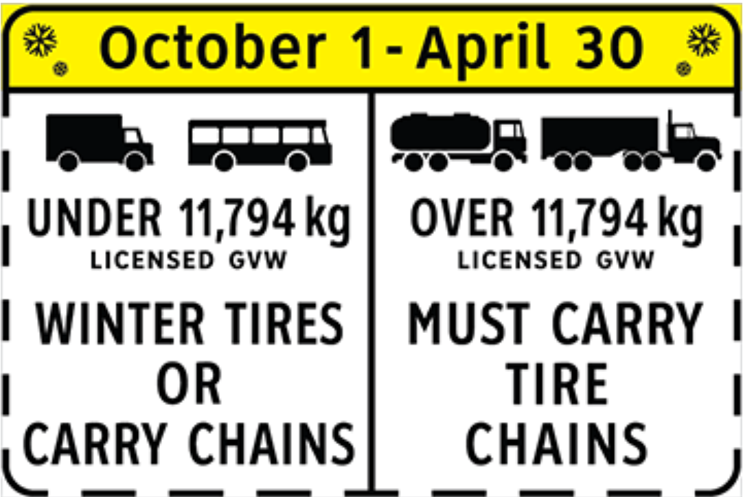 Winter is on the way! October 1st Commercial Trucks must carry tire chain. ORDER TODAY.